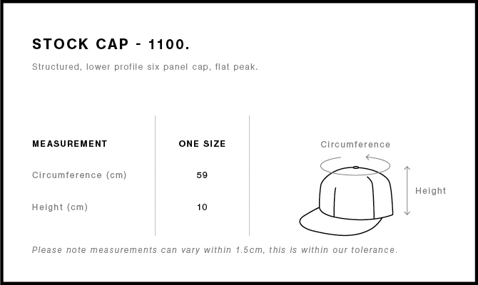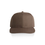Explore the AS Colour Stock Cap: A high-profile snapback cap with a flat peak, crafted from mid-weight 80% acrylic and 20% wool blend. Features include a plastic snapback closure, light grey under-peak lining, stitching eyelets for ventilation, and a self-fabric dome at the top. One size fits all with a tear-out AS Colour label for personalized wear.